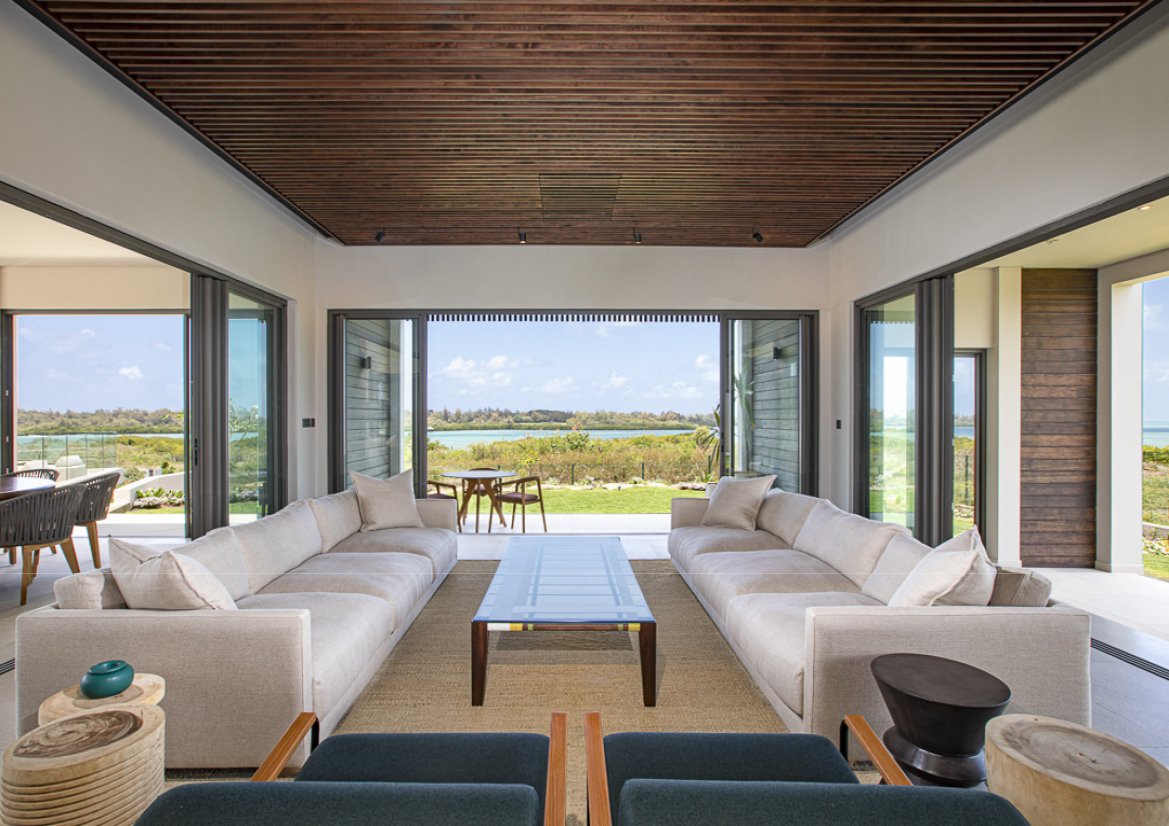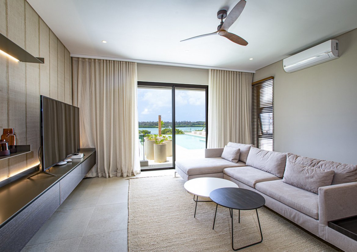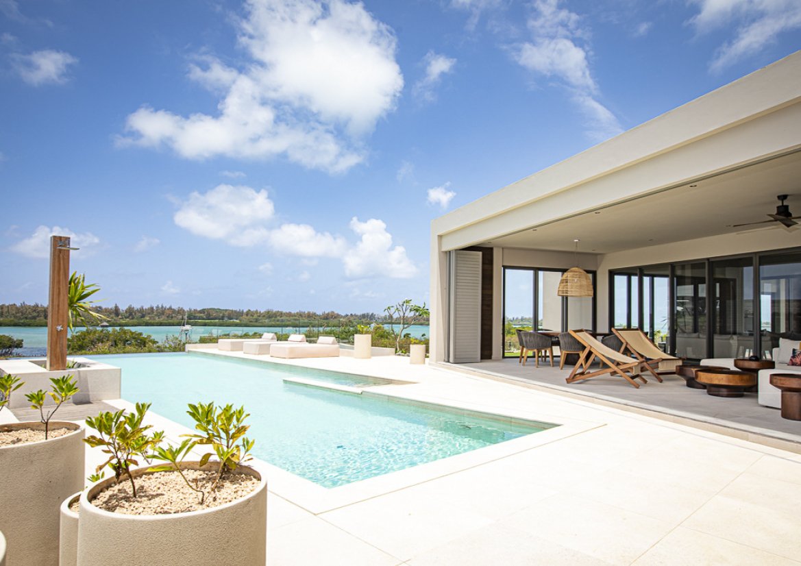 Magnificent villa recently built, on a 2,079 sqm high ground, with a surface of 521 sqm in the new district of Rive Est in Anahita. This property with its contemporary architecture, chic and refined, offers beautiful living spaces facing the lagoon and the Île aux Cerfs.