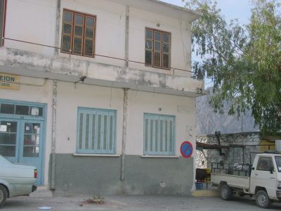 3 geschoessiges Gebaeude am Dorfplatz von Grigoria, Suedkreta. War frueher ein Kaffeehaus.