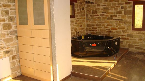 Diese neue Natursteinhausvilla befindet sich in der Endbauphase und der Preis versteht sich als Endpreis nach Abschluss der kompletten Bauarbeiten. Das Erdgeschoss hat einen offenen Wohnraum mit Kamin. Die moderne Küche liegt auf einer erhohten Ebene. Es gibt 2 Schlafzimmer im Erdgeschoss, eines mit angrenzendem Bad. Sowie noch ein separates Gastebad. Zimmerwande sind ebenfalls aus Naturstein, Qualitatsfliesen, getonte Fensterscheiben und Holztreppe. Im Obergeschoss gibt es ein extragrosses Schlafzimmer mit Kamin und ein angrenzendes Bad mit Whirlpool (Hydromassage) mit Opaqueglas. Schiebetüren führen zum Balkon mit einem spektakularen Blick auf die landliche Umgebung. Im hinteren Bereich des Hauses befinden sich ein voll ausgestattetes Gastehaus, eine Garage/Abstellraum, ein Grillplatz und ein Swimming-pool. Das Anwesen liegt 5km entfernt von Mires.