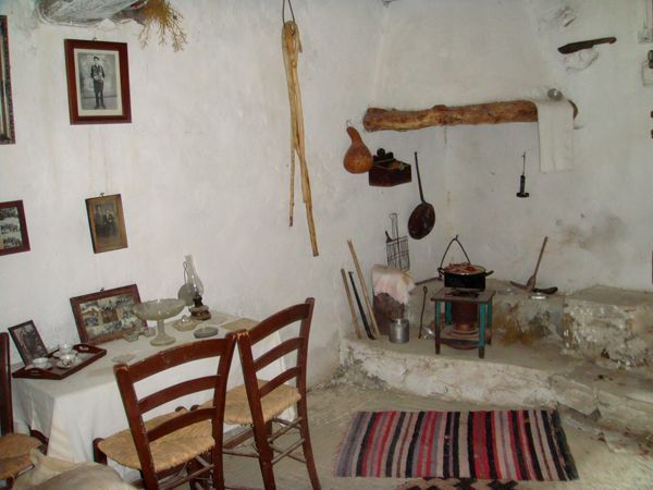 Durch eine Holztür gelangt man in einen sonnigen Innenhof. Im Erdgeschoss gibt es 2 grosse Zimmer, einen offenen Kamin, einen externen Holzofen und einen Abstellraum. Draussen führen Stufen hinauf in den 1. Stock, in dem sich die Küche, das Wohnzimmer und 3 Schlafzimmer, eines davon mit sonniger Terrasse, befinden.Ein kleiner Abstellraum konnte hier zu einem Bad mit Waschküche umgebaut werden. Das Haus wird mit seinem Inhalt, den kretischen Antiquitaten und Artefakten verkauft. Das Gebaude braucht einige Modernisierungen, ist aber auch in seinem gegenwartigen Zustand bewohnbar. Der Badeort Agia Galini liegt 5 km und die Stadt Rethymnon 47 km entfernt.