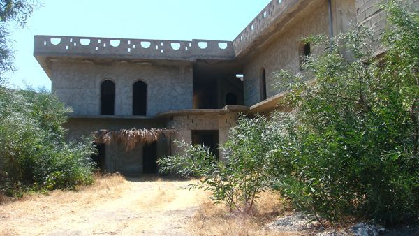 Kalamaki Strand, Süden Kretas. Halbfertiges 2-geschossiges Hotelgebaude, nur wenige Meter vom Meer entfernt.