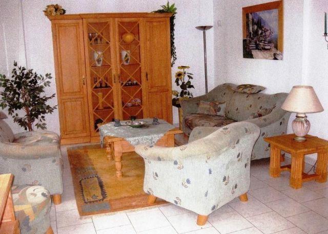 Es besteht aus Erdgeschoß zwei Schlafzimmern, Salon, Küche, Badezimmer, lager mit Fußbodenheizung und Klimaanlage und im Obergeschoss 4 -Studios. Im Grundstück befindet sich noch ein Haus etwa 75 qm, Garage zwei Positionen .Außen: Asphaltiert rund um das Haus und verschiedene Blumen ,Kiefer und Rasen. Wichtiges Detail ist, dass es ein autonomes System Bewässerung hat.