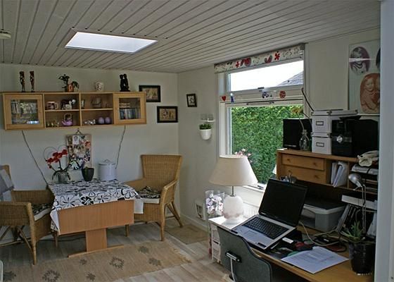 Dejligt soveværelse med skabe. 2 børneværelser, hvoraf det ene har direkte udgang til terrasse og have. Både stue og værelser har flotte nye askeparketgulve. Rigtig pænt badeværelse med god bruseniche og flot nyt skabsmiljø og toilet. På badeværelset er der også plads til vaskemaskinen. Pæne lyse trælofter over alt. I gangen er der loftlem med trappe..