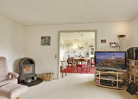 Indeholder: Entre med inst. for vaskemaskine og tørretumbler * Køkken / alrum med pænt køkken * 2 stuer, hvoraf den ene har dør til haven * Stort værelse * Badeværelse med bruseniche, fliser til loft, gulvvarme * 2 værelser - anvendes som soveværelse med afd. med løse skabe.