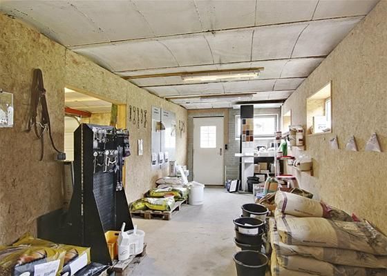 Stalden er indrettet med 6 hestebokse, saddelrum samt plads til oplag af foder. Herudover stort værksted med plant gulv samt aut. port, lade samt stor garage.