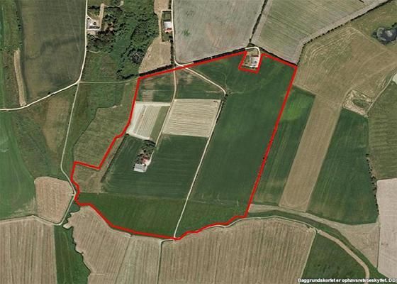 Til ejendommen hører et areal på 25,4 ha, hvor ca. 17,76 ha er støtteberettiget agerjord, ca. 5,23 ha permanent græs og ca. 1,3 ha skov. Fra ejendommen er der en fantastisk udsigt over engene.