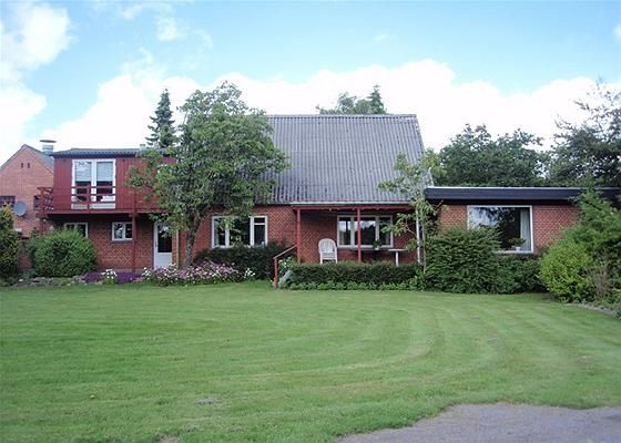 Gårdspladsen er grusbelagt og omgivet af træer. Syd for stuehuset er der dejlig have, åben med god udsigt over mark og søer ...