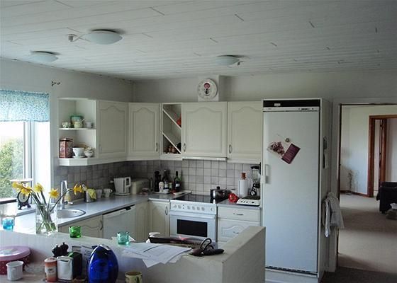 Stuehuset er opført i 1962, i røde mursten op pålagt bølgeeternit. Boligareal 223 kvm, heraf er tagetagen på 65 kvm. Vinkelbygn...