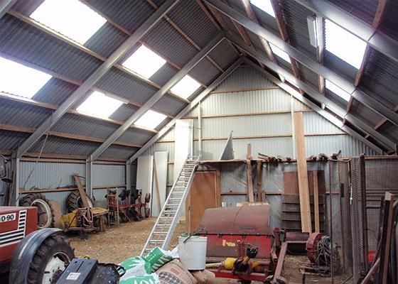 Vinkelret på laden er der i 2005 opført en 240 kvm. maskinhal, i stålprofilplader med integreret dobbeltgarage. Der er pålagt bølgeeternitplader på taget.
