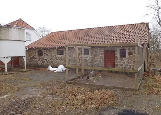 Staldbygning, maskinhal, halvtag og kampestensbygning, i alt 1182 kvm.