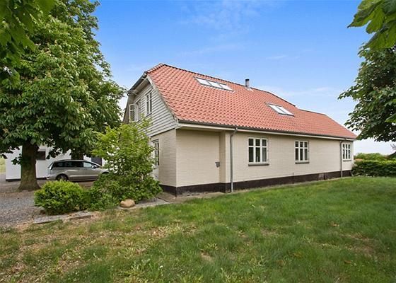 Boligen er opført i sten med malet facade, tegltag og bondehus vinduer. Er indrettet som følger: Forgang med trappe til 1.sal, køkkenalrum med HTH elementer, tv stue, stue, værelse, badeværelse med bruseniche og baggang/bryggers. 1.sal består af soveværelse med tilhørende walk in closet, 2-3 værelser og pulterrum.