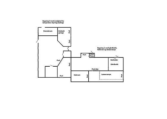 Der er et ca. 100m2 stort rum, hvor der i øjeblikket er opstillet er ægpakkemaskine. Dertil kommer yderligere rum. I den ene ende med udgang til gårdsplads er der et rum på ca. 35m2, der har været anvendt til selvbetjeningsgårdbutik.