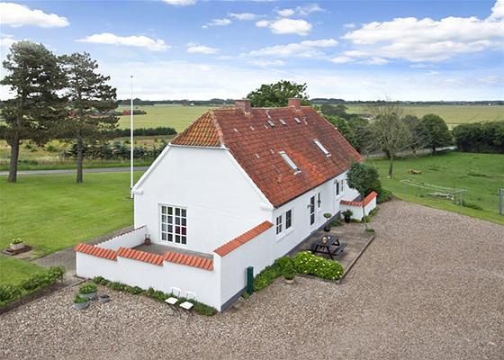 Højt og meget flot beliggende stuehus med en velholdt indkørsel.