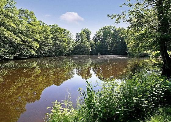 Fra stuehuset er der udsigt til den parklignende have som er omkranset af store træer b.l.a et sjældent platantræ, rhododendrenbuske mv. Til parken hører også en stor sø med et rigt dyreliv og springvand drevet af solceller.