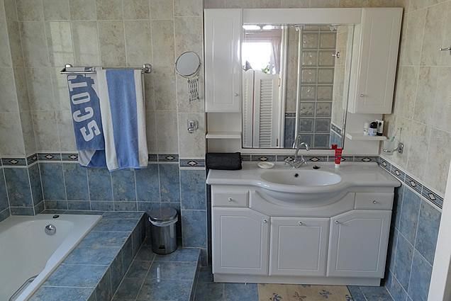 ? Schlafzimmer mit Bad mit Badewanne und Dusche.