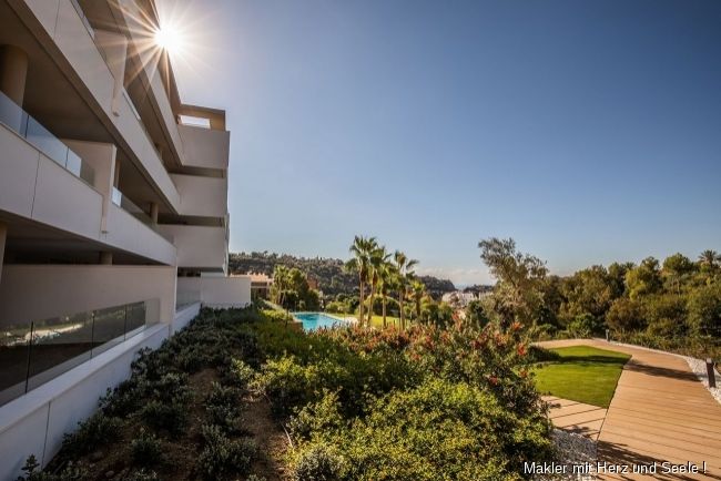 Die neu erbaute Wohnanlage liegt in einer der exklusivsten Gegenden von Benahavis: in La Reserva de Alcuzcuz und damit ganz in der Nähe der Golfplätze La Quinta und Los Arqueros Golf. Dank der Südausrichtung und der höheren Lage des Wohnkomplexes genießen Sie einen weiten Blick über Golfplätze, das Meer und die schöne Umgebung. Ein idealer Ort, um sowohl den Sonnenaufgang als auch den Sonnenuntergang auf der eigenen Terrasse zu erleben. Die ausgezeichnete Anbindung sorgt für schnelle Erreichbarkeit der Golfplätze, der Strände und natürlich der vielseitigen Gastronomie in Benahavis, Marbella, Puerto Banús oder an der neuen Promenade von San Pedro. Der Wohnkomplex bietet Ruhe und Beschaulichkeit und ist dennoch nur 5 Kilometer vom lebhaften Freizeitangebot zum Beispiel in Marbella entfernt.