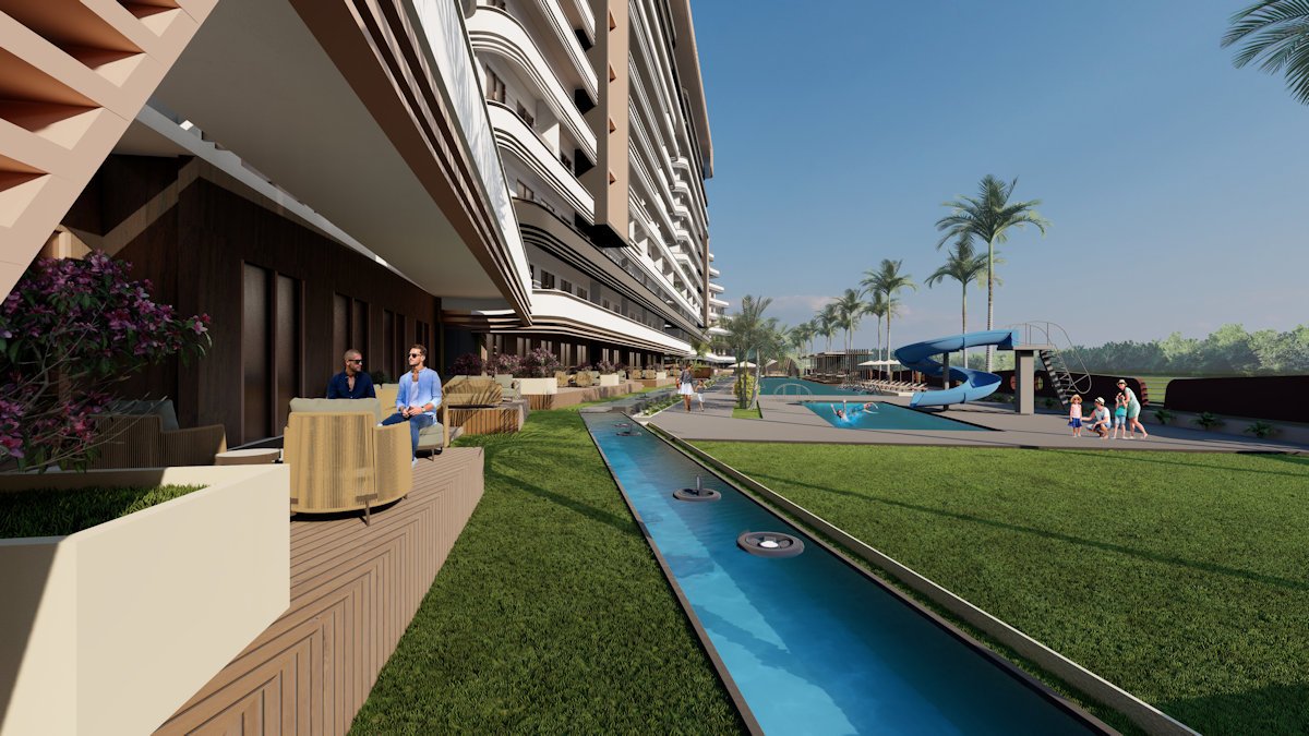 sind 1 Büro, 1+1 87 m², 2+1 1 10 bis 145 m² und 3+1 163 bis 186 m² Wohnungen. Alle Wohnungen befinden sich auf der Südseite und alle sehen auch die sozialen Bereichen. Sind Sie bereit für eine Kreuzfahrt mit Luxusappartements mit komfortablen und geräumigen Terrassen in den oberen Etagen und Gärten und Villenleben im Erdgeschoss.