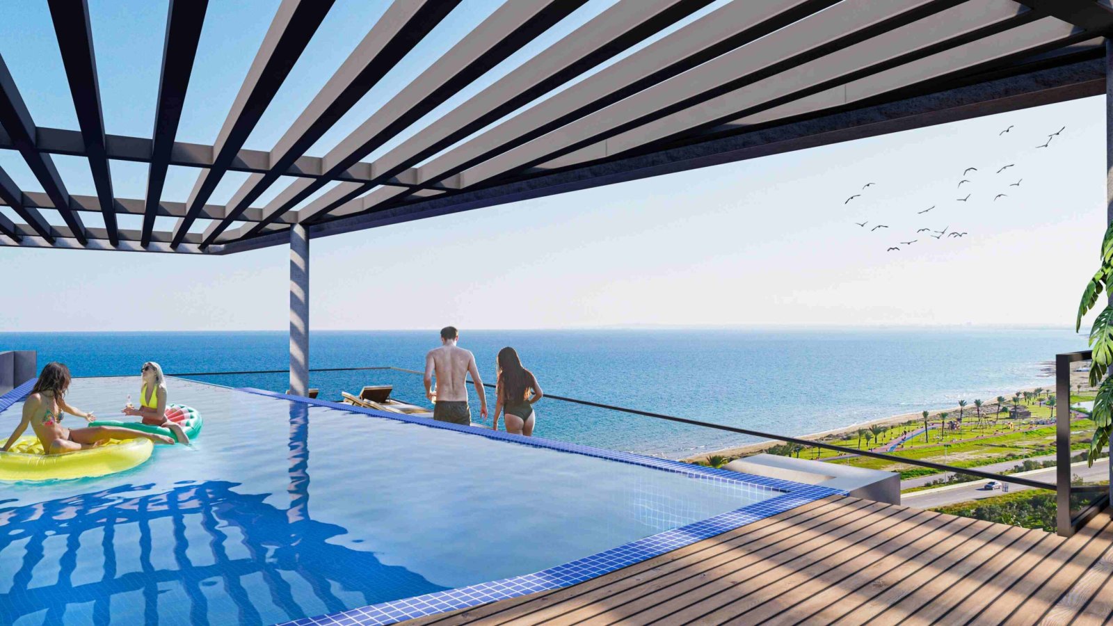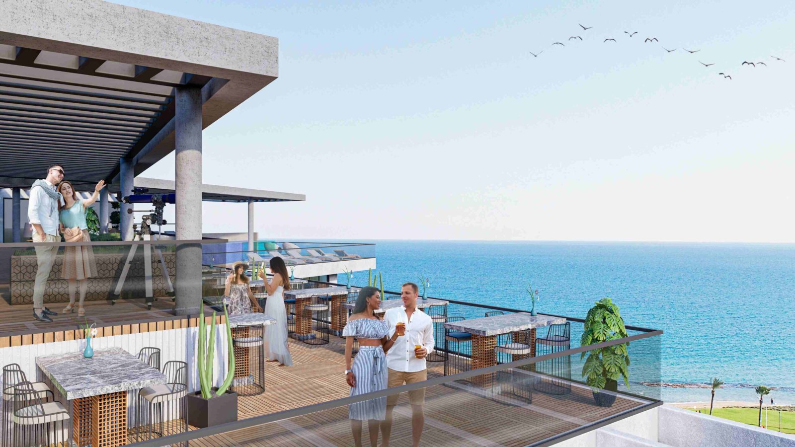 Mit seinem ikonischen Design und seinem Potenzial, ein Wahrzeichen der Region zu werden, hat dieses Projekt eine dynamische Gebäudeform, die traditionelle prismatische Formen herausfordert. Die Wohnungen in den Blöcken A und B bieten einen ungehinderten Blick auf das Meer und verfügen über große Terrassen, Jacuzzi und Whirlpools. Der Pool und das Restaurant/Bar auf der Dachterrasse sind für alle Wohnungen leicht zugänglich.