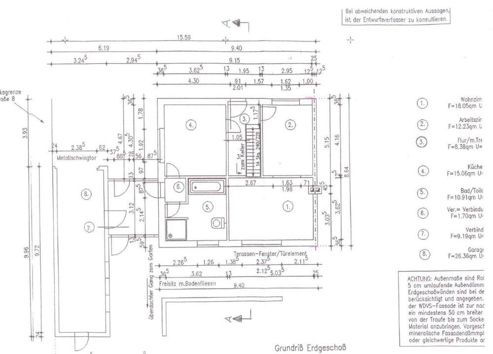 Eine Besonderheit ist die großzügige, langförmige Garage mit einer Fläche von ca. 28 m². Sie bietet nicht nur ausreichend Platz für ein PKW, sondern im hinteren Bereich auch eine Werkstatt, die vielseitig genutzt werden kann. Vor der Garage befindet sich zusätzlich ein Stellplatz für einen weiteren PKW.