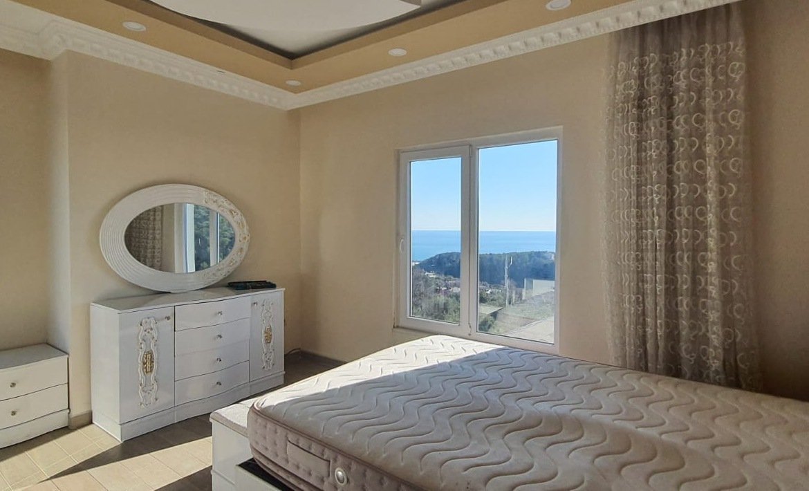 Alanya, Incekum, frei stehende 9 Zimmer Villa, 350 m², 1.100 m² Grundstück, 7 Schlafräume, 4 Badezimmer, 5 Balkone, große Terrasse, möbliert, Kamin, Sauna, Hammam, privater Pool, privater Garten, Grillplatz, Meerblick, Bergblick, Strand in 1.200 m,
