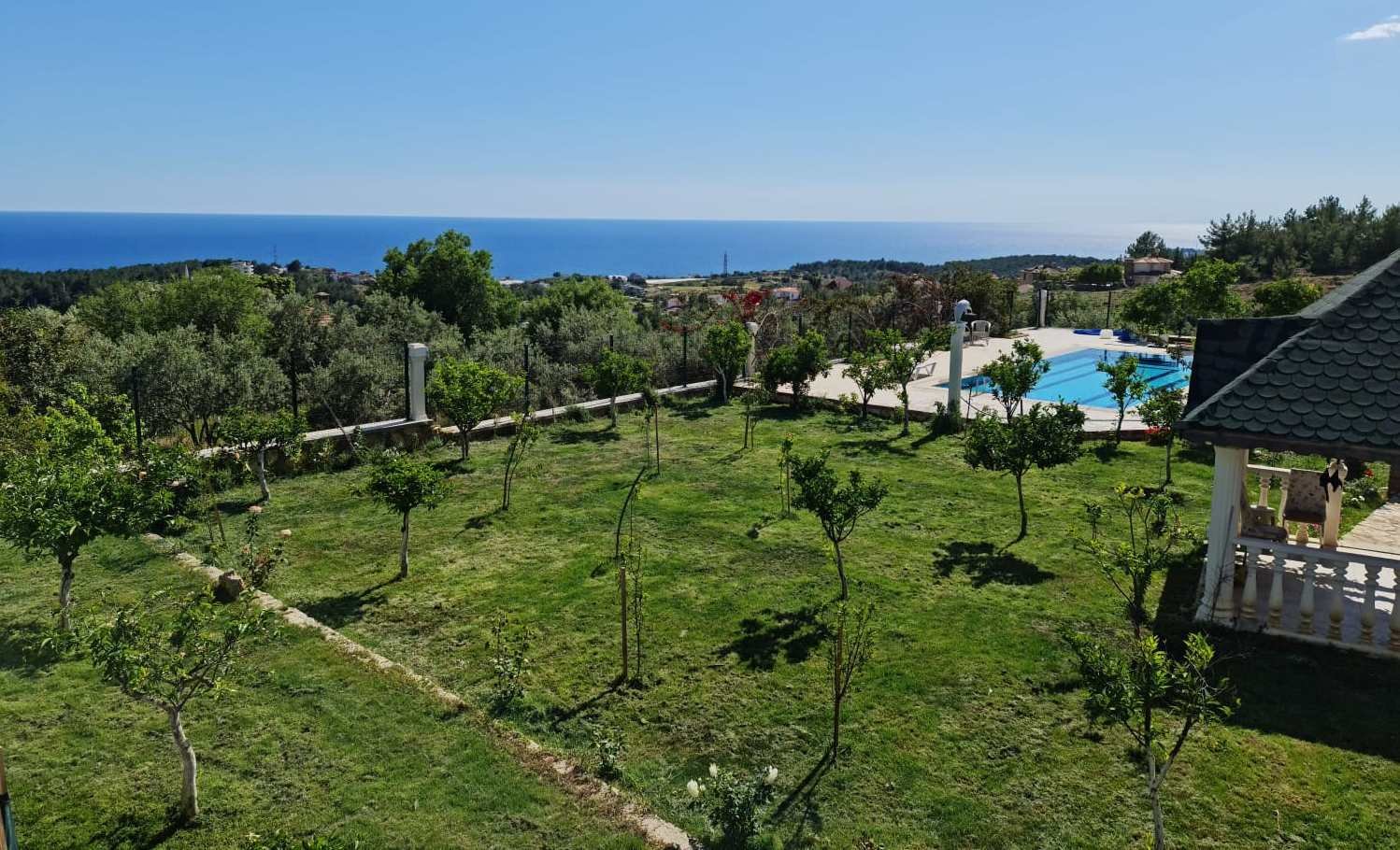 Alanya, Incekum, frei stehende 9 Zimmer Villa, 350 m², 1.100 m² Grundstück, 7 Schlafräume, 4 Badezimmer, 5 Balkone, große Terrasse, möbliert, Kamin, Sauna, Hammam, privater Pool, privater Garten, Grillplatz, Meerblick, Bergblick, Strand in 1.200 m,