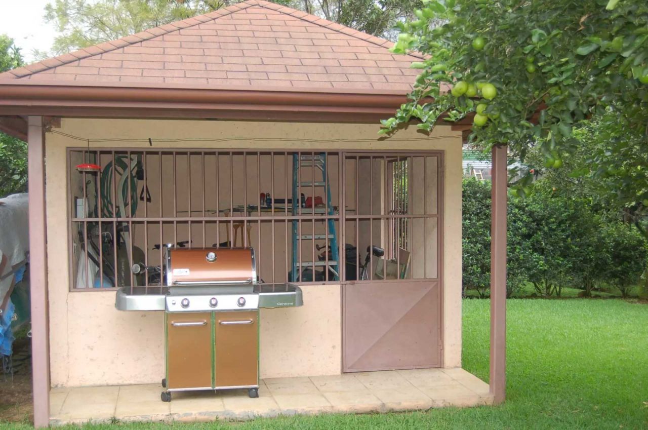 There is a storage bodega at the rear of the property. The bodega is currently used to store bicycles, a gas barbeque, the electronic control for the automatic lawn sprinkling system, and a pressurized water tank with electric pump.