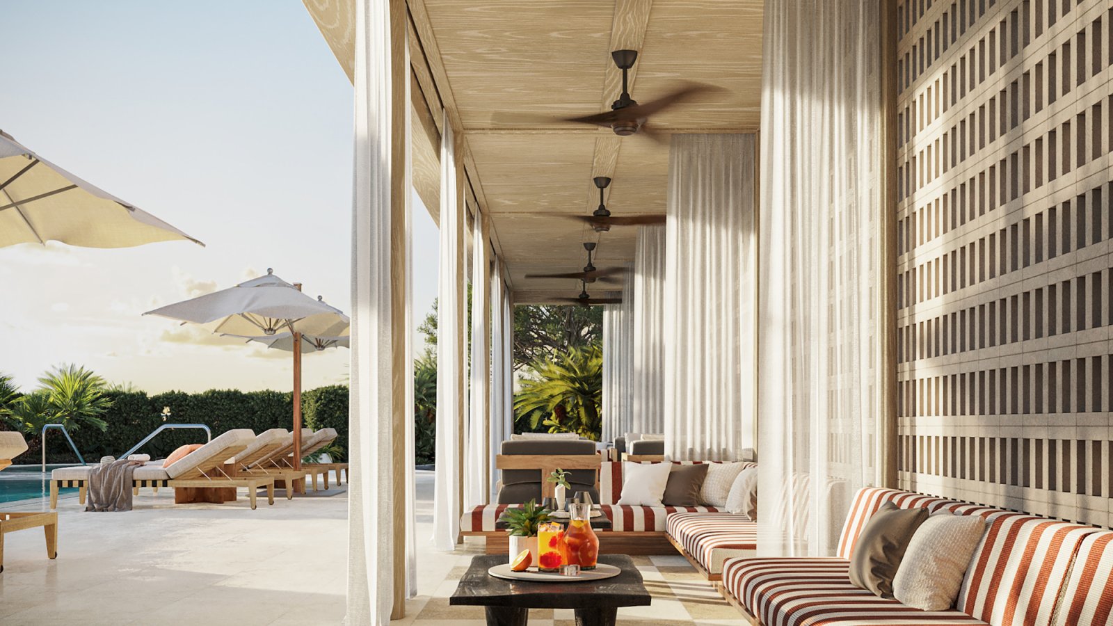 Rooftop swimming pool, private cabanas, and summer kitchen