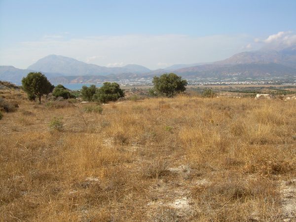 Grundstueck mit traumhaften 360 Grad Rundumblick auf Meer, Messaraebene und Gebirge. Kalamaki, Suedkreta.