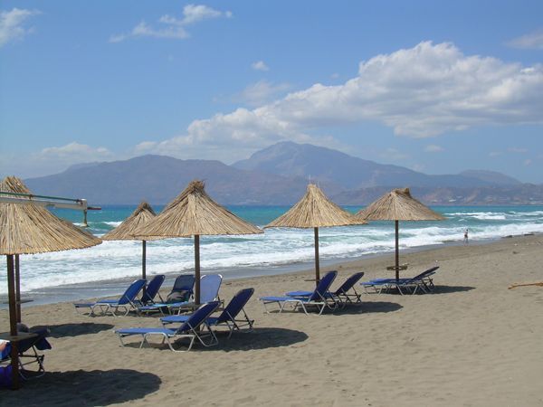 Erhoeht liegendes Grundstueck mit Ausblick auf den Strand von Kalamaki. Kalamaki ist ein beliebtes Urlaubsziel fuer Familien mit einem langen Sandstrand an dem sicheres Baden moeglich ist. Mehrere Restaurant, Tavernen, Bars und Cafes liegen direkt am Strand und bieten einen traumhaften Ausblick auf die Bucht und das Libysche Meer. Das Grundstueck ist ideal geeignet fuer ein Ferienhaus oder ein Hotel. Wasser und Stromanschluss sind in der Naehe vorhanden.
