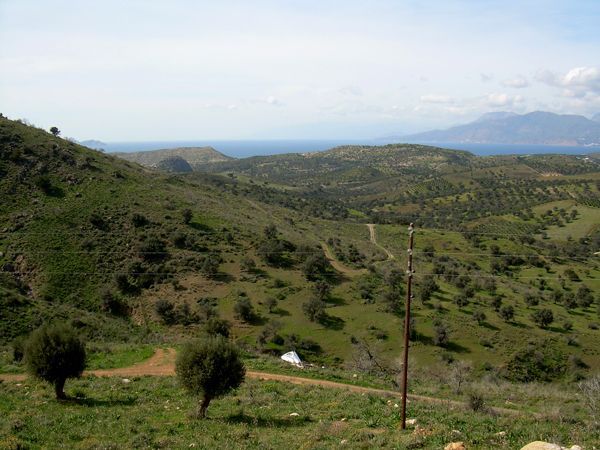 Das Land liegt 1 km entfernt vom Dorf Listaros und 10 km von der Ortschaft Mires. Das Land liegt auf einem H