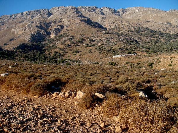 Das Land befindet sich 5km entfernt vom wunderschonen Strand von Triopetra im Süden Kretas. Der obere Teil bietet Panoramablick auf die Südküste und die umliegende landliche Umgebung. Die Zufahrt über eine Kiesstrasse liegt 1 km entfernt von der Hauptstrasse. Diese ruhige Gegend eignet sich ideal, der die unberührte Natur von Kreta geniessen will und atemberaubende Aussichten sucht.