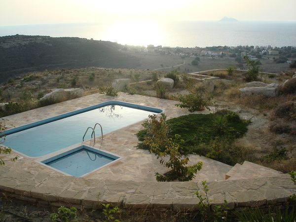 Die Villa liegt auf der Hügelseite über dem Ferienort von Kalamaki mit Panoramablick aufs Meer und der umliegenden Landschaft. Die Villa hat ein Hauptschlafzimmer mit anliegendem Bad und ein Doppelschlafzimmer. Es gibt ein zweites separates Gastebad. Der offene Wohnraum hat eine anliegende Küche, einen Essbereich und einen Kamin im Loungebereich. Die Türen führen in einen gepflasterten Innenhof. Hier gibt es einen Grill-BBQ-Bereich mit Holzofen und 2 Swimming-pools, einer davon ist kinderfreundlich. Die Villa liegt in privater Lage und mit schneller Anbindung zu den Orten Timbaki und Mires. Der schone Sandstrand von Kalamaki liegt nur wenige Autominuten entfernt. Die Villa steht voll mobliert incl. der voll ausgestatteten Küche (Einbauherd, Ofen, Kühlschrank und Geschirrspüler) zum Verkauf. Ausserdem sind eine Heizung, Klimaanlage und Sat "TV vorhanden.