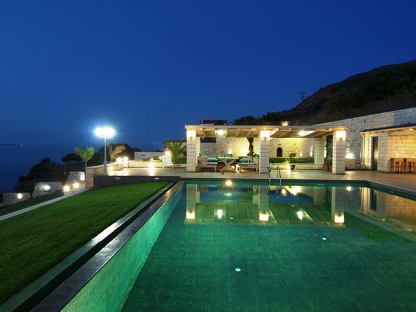Die 400 m² grosse Villa befindet sich im Dorf Kalami, in der Souda Bucht, in der Gegend Chania. Die architektonisch schon gestaltete Villa hat 3 Ebenen auf einem Grundstück von 5.500 m2, die zum Meer hinab führen. Im ersten Stock liegt der offene Wohnbereich mit Kamin, ein Esszimmer und eine Küche mit Geraten in Topqualitat. Das Panoramafenster bieten einen Blick herrlichen Blick auf die Souda Bucht. Auf der nachsten Ebene, 4 Stufen hoher, befindet sich das Foyer, das Gaste-WC und 3 Schlafzimmer, alle mit eigenem Bad. In der zweiten Etage ist das Master-Schlafzimmer mit grossem Bad und ein Büro. Alle Zimmer haben grosse Balkone und es gibt eine Veranda auf der zweiten Etage mit herrlichem Blick auf das Meer. Das Erdgeschoss befindet sich das Hamam-Bad, ein Wohnzimmer und eine Speisekammer. Das Areal verfügt über ein 100 m² Schwimmbad, einen Jacuzzi, eine Dusche, ein BBQ und Rasenflachen mit Palmen. Das Anwesen ist von einer Steinmauer umgeben. Preis auf Anfrage.