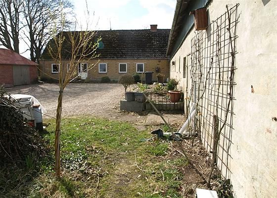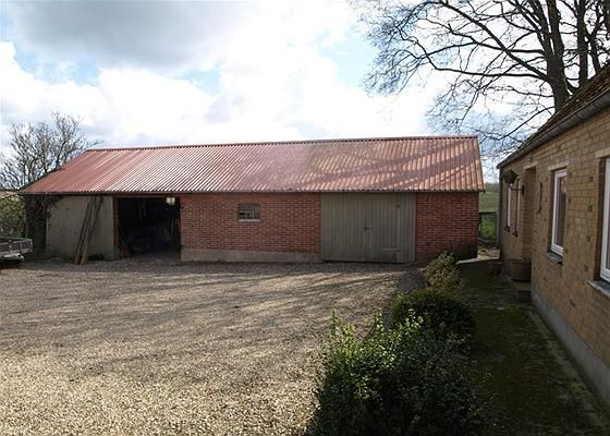 Stald: 156 m2. Opført i 1920 af pudset mur med tag af stålplader