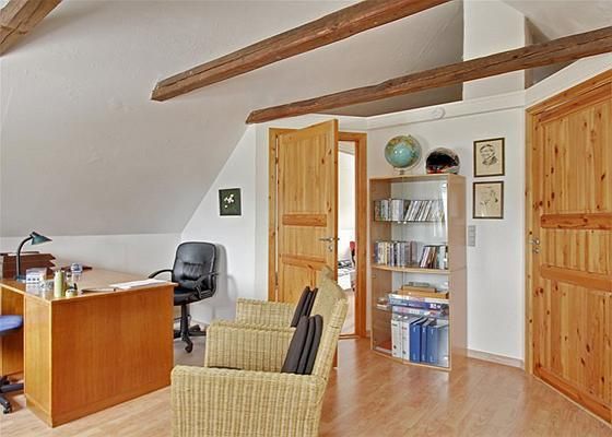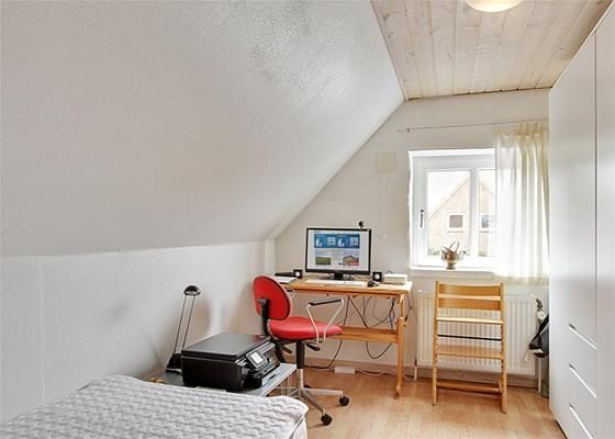 Indeholder: Kombineret entre / bryggers med klinkegulv med gulvvarme, og garderobeplads. Stort og rummeligt badeværelse med lyse klinker, gulvvarme, håndklædetørrer, samt stor bruseniche. Hyggeligt spisekøkken med pænt lyst inventar og laminatgulv, i åben forbindelse til: TV-stue med laminat gulv. Soveværelse med skabe. Trappe til 1. sal med: Stort repos/stue med loft til kip, synlige bjælker, opgang til hems. 2 regulære børneværelser med skabe.
