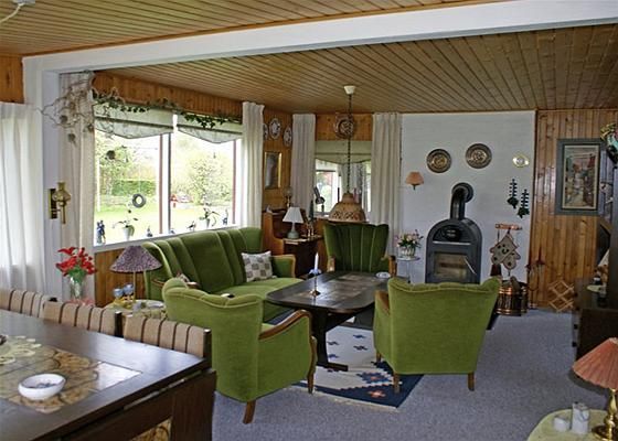 Sommerhuset har en dejlig stor og lys stue med brændeovn, hvorfra der er udgang til sydvendt terrasse. Pænt soveværelse med skabe. Lille værelse med sengeplads. Dejligt køkken med skabe i lys eg. Flot toilet med skabsmiljø. Havestue med brændovn og kig til fjorden. Derudover er der et bruserum, hvor der også er plads til vaskemaskinen. Stort bryggers/værksted, hvorfra der er udgang til stor carport. Bag sommerhuset er der også en overdækket terrasse.