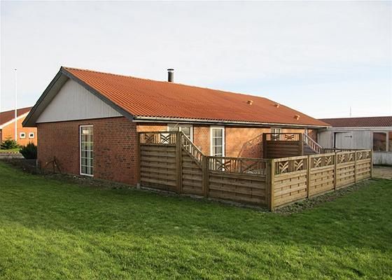 Boligen er opført i røde teglsten, eternittag, gavlene er beklædt med træ og plast vinduer.