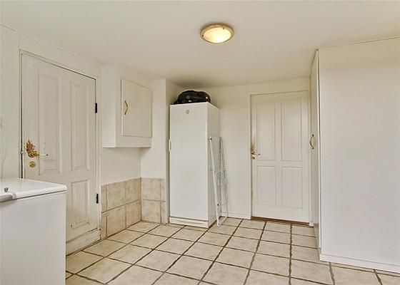 Stort bryggers med klinkegulv herfra adgang til toilet og stald