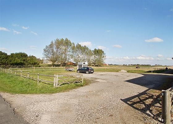 Stort ridehus på 22 x 44 m med god bund, ridebane 20 x 60 m med dressurhegn, store indhegnede folde samt gode P-muligheder.