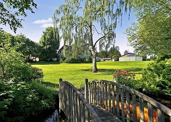 Fra stuehuset er der udsigt til den parklignende have som er omkranset af store træer b.l.a et sjældent platantræ, rhododendrenbuske mv. Til parken hører også en stor sø med et rigt dyreliv og springvand drevet af solceller.