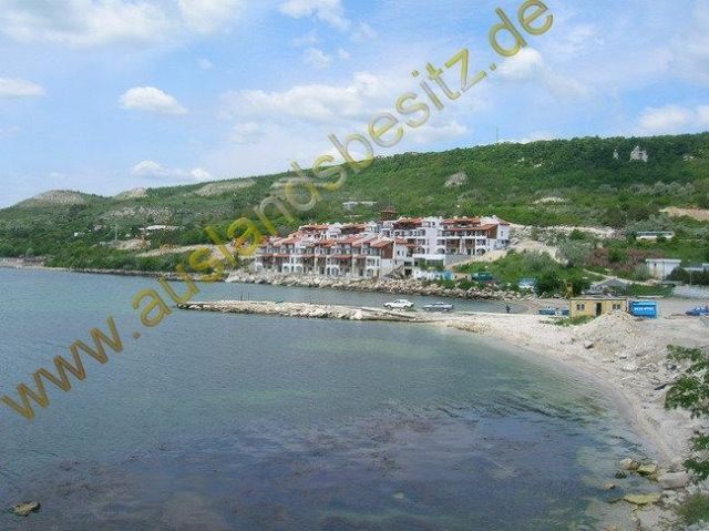 Neue Appartementsanlage erste Meereslinie am Weisse Lagune. Das Gebäude ist gelegen direkt am Strand der Weissen Lagune, 6 km von Kavarna, 9 km von Balchik, 4 km weit vom Golfplatz, 48 km weit vom internationalen Flughafen. Die Weisse Lagune liegt in der ersten Linie der bulgarischen Schwarzmeerküste. Sattgrüne Berghänge und schroffe Kalkfelsen formen die malerische, kleine Lagune mit ihrem feinen Sandstrand. Eine Mineralquelle mündet direkt ins seichte Meer und mischt sich mit dem türkisblauen Wasser.