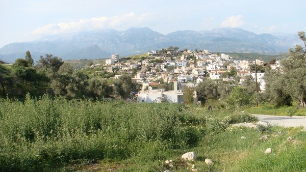 Kamilari, Südkreta. Bauland 3.000m2, im Bebauungsplan. Blick auf das Dorf