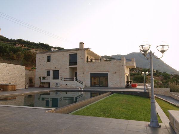 Die 400 m² grosse Villa befindet sich im Dorf Kalami, in der Souda Bucht, in der Gegend Chania. Die architektonisch schon gestaltete Villa hat 3 Ebenen auf einem Grundstück von 5.500 m2, die zum Meer hinab führen. Im ersten Stock liegt der offene Wohnbereich mit Kamin, ein Esszimmer und eine Küche mit Geraten in Topqualitat. Das Panoramafenster bieten einen Blick herrlichen Blick auf die Souda Bucht. Auf der nachsten Ebene, 4 Stufen hoher, befindet sich das Foyer, das Gaste-WC und 3 Schlafzimmer, alle mit eigenem Bad. In der zweiten Etage ist das Master-Schlafzimmer mit grossem Bad und ein Büro. Alle Zimmer haben grosse Balkone und es gibt eine Veranda auf der zweiten Etage mit herrlichem Blick auf das Meer. Das Erdgeschoss befindet sich das Hamam-Bad, ein Wohnzimmer und eine Speisekammer. Das Areal verfügt über ein 100 m² Schwimmbad, einen Jacuzzi, eine Dusche, ein BBQ und Rasenflachen mit Palmen. Das Anwesen ist von einer Steinmauer umgeben. Preis auf Anfrage.