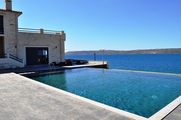 Souda Bay, Chania, Kreta. Neue Luxus-Villa aus Stein mit eigenen Strand und Bootssteg........