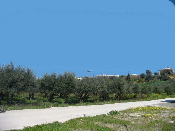 Das Land befindet sich im Westen der Stadt Heraklion, in einer Gegend, in der viele neue Ville gebaut worden sind. Das Land misst 1.600 m² und ist flach. Es kann in zwei Bereiche von je 800 m² aufgeteilt werden. Das Grundstück liegt nicht in der Stadt Planungszone, wird aber in Kürze mit einbezogen werden. Es gibt eine direkte Zufahrt von der Asphaltstrasse, Wasser- und Stromanschlüsse wurden gelegt. Die 70-80 Olivenbaumen liefern pro Jahr Oliven zur Herstellung 400kg Olivenol. Diese Gegend ist sehr beliebt bei neue Hausbesitzer, da sie an Heraklion angebunden ist und man trotzdem das Gefühl von Leben auf dem Lande hat.