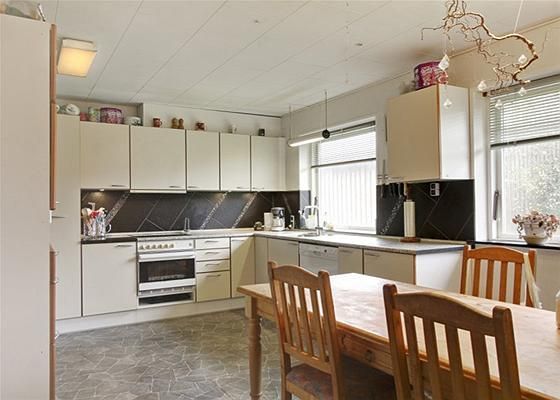 Indeholder: Entre med inst. for vaskemaskine og tørretumbler * Køkken / alrum med pænt køkken * 2 stuer, hvoraf den ene har dør til haven * Stort værelse * Badeværelse med bruseniche, fliser til loft, gulvvarme * 2 værelser - anvendes som soveværelse med afd. med løse skabe.