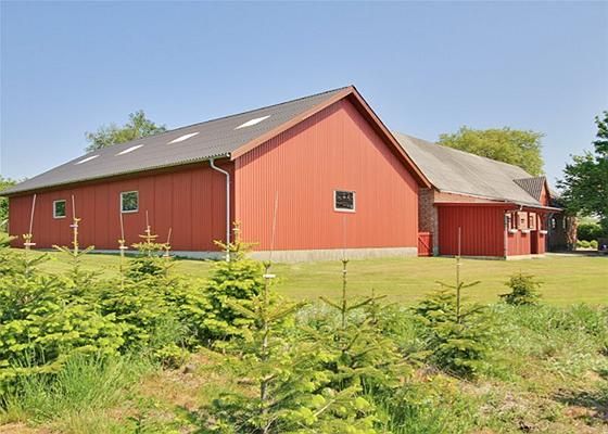 Rødstensbygning fra 1955 på 174 kvm , med eternittag. Bygningen er indrettet med stor gildesal/aktivitetsrum * Hobbyværksted *Brænderum. Maskinhal fra 2002 på 170 kvm. der fremtræder i stålsider med eternittag og gulv i SF-sten samt garage m. elport.