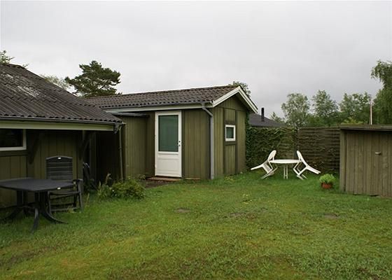 I den tidligere garage er der indrettet et godt redskabs- og hobbyrum samt et bryggers, der er også mulighed for indretning af anneks. Derudover er der et brændeskur.