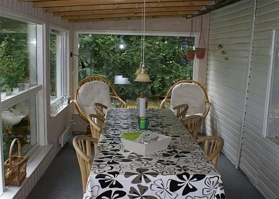 Sommerhuset har også en dejlig solrig terrrasse mod syd og alt fremtræder pænt og velholdt.