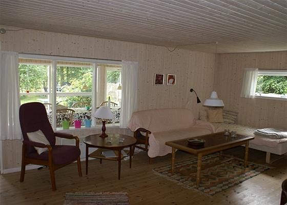 Sommerhuset er indrettet med en dejlig lys forstue med god spiseplads og hyggehjørne. Stor dejlig stue i åben forbindelse med pænt køkken i hvid laminat med bøgekanter. I stuen er der et f...